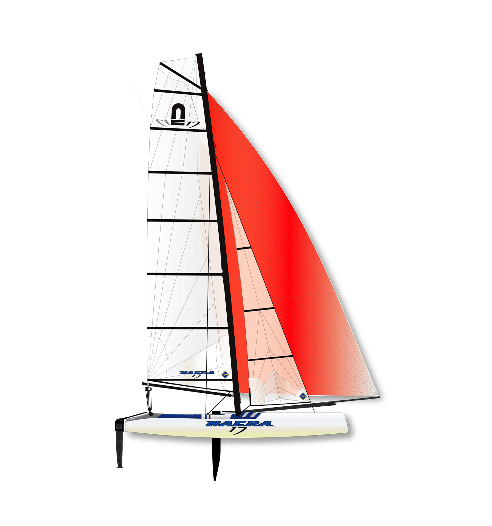 Le Nacra 17 Olympic dispose d'un puissant mât à carbone complet pour assurer à la fois la sécurité (le moment de re-droite contre le poids de l'équipage) et la performance, le rapport d'aspect élevé moderne coupant les voiles, facile à monter/puissance, conçu par l'un des fabricants de voiles multicoques les plus expérimentés au monde.